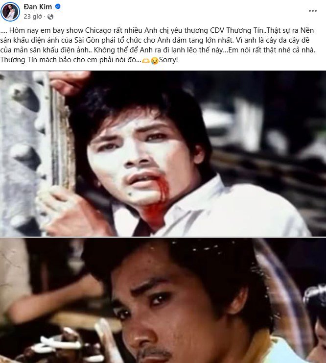 Sau khi nghệ sĩ Thương Tín qua đời, ca sĩ Đan Kim đã đăng bài viết vạch trần kẻ hãm hại nam tài tử, đứng sau chỉ đạo khiến không một nghệ sĩ nào đến tang lễ. Thậm chí 1 vòng hoa cũng không gửi.