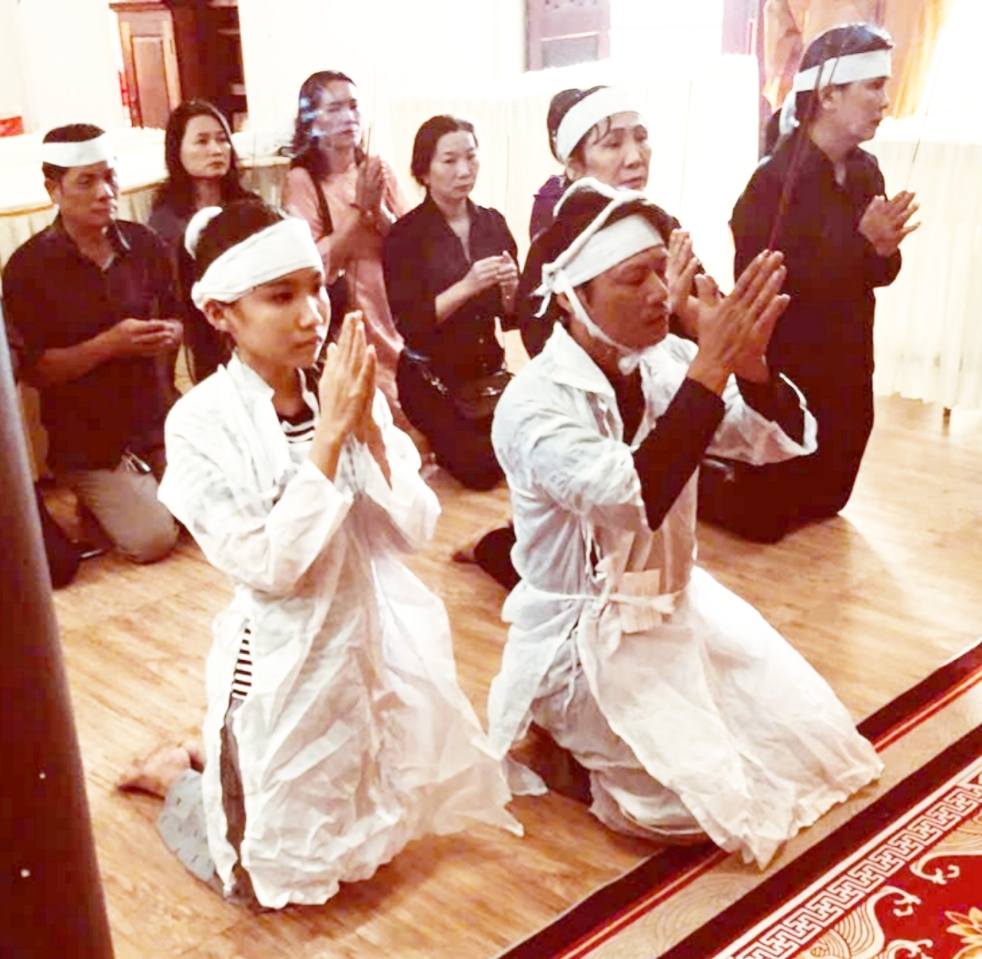 Hai con Thương Tín trong buổi lễ cầu siêu cho cha.