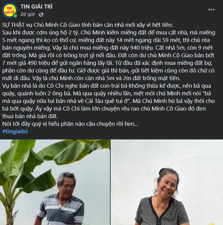 SỰ THẬT vụ Chú Minh Cô Giao tính bán căn nhà mới xây vì hết tiền: