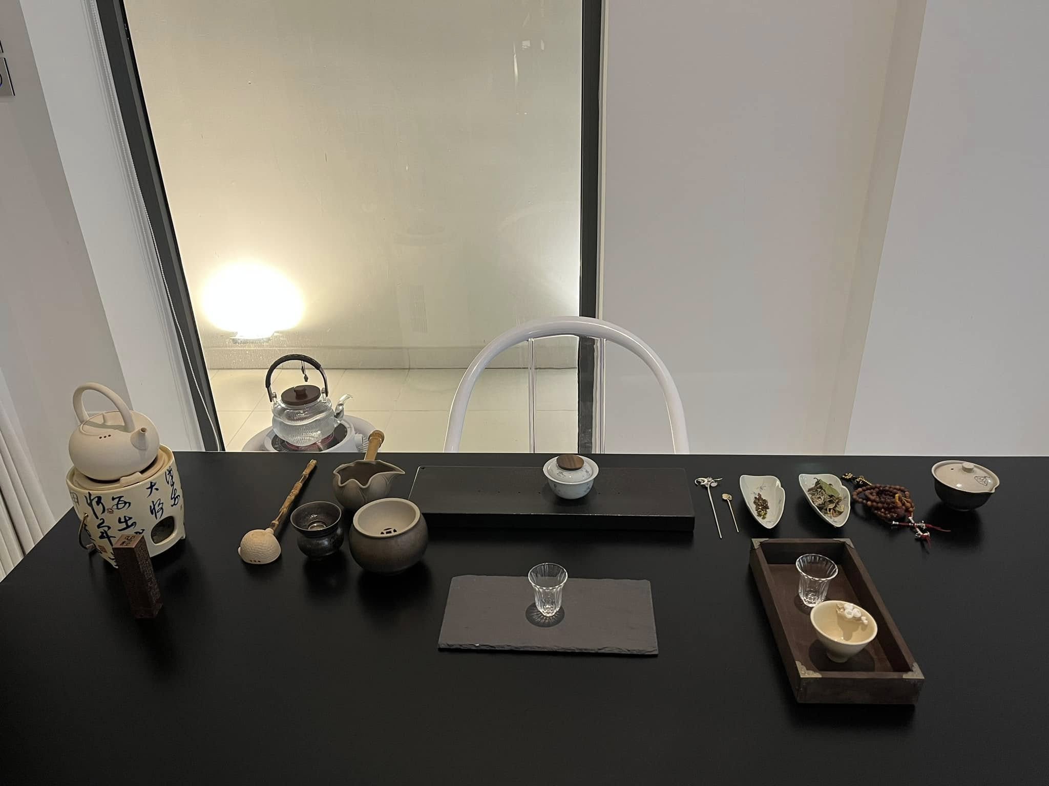 Yêu thích hoa và trà đạo nên vợ chồng Thuỷ Tiên – Công Vinh đã dành một không gian riêng cho bàn trà